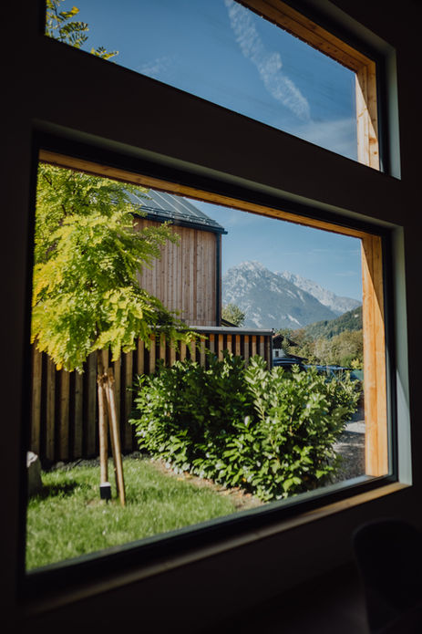 Das Haus liegt in einer ruhigen Sackgasse, umgeben von Wiesen, Wald und Bergen – ein perfekter Ort für Erholung zu jeder Jahreszeit.